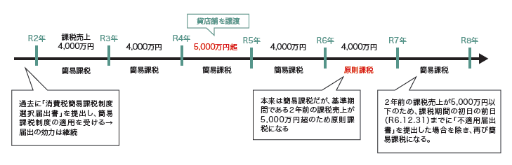 2.基準期間の課税売上が5,000万円を超えた後の簡易課税制度の適用