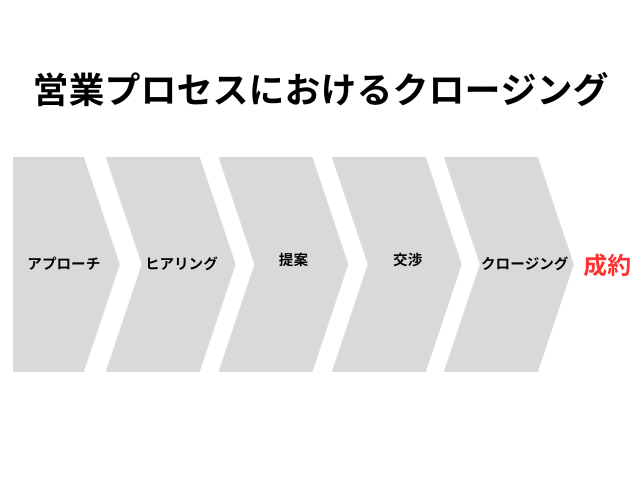 クロージングとは、商談の終盤においてお客様の意思決定を促す一連の対応を指します。