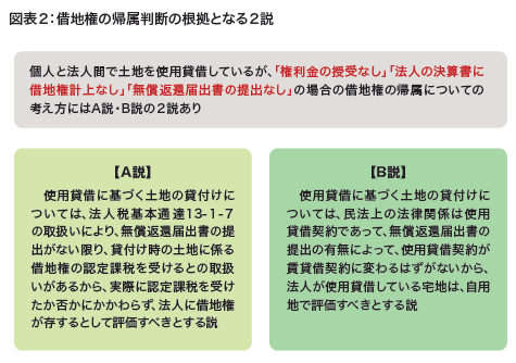 したがって、事実関係を前提に、図表2の2説のいずれかに拠って借地権の帰属判断を行うことが相当と考えます。