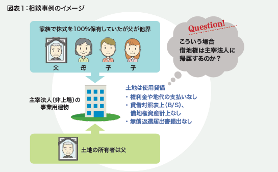 父の主宰法人(非上場、父、母および子2名で株式を100%保有)は、父所有の土地上に使用貸借でビルを建て、そこで事業を行っています。父と主宰法人との間では、権利金や地代の支払いはなく、主宰法人の貸借対照表上、借地権の計上はありません(税務署に「土地の無償返還に関する届出書」〈以下「無償返還届出書」〉も提出しておりません)。