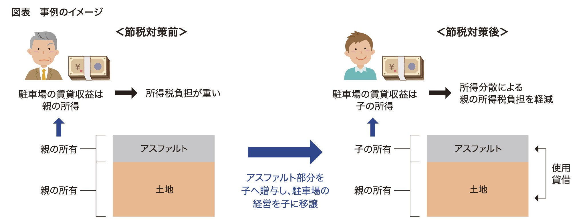 最近、親が経営する貸駐車場の土地を子へ使用貸借し、貸駐車場の収益を子に移転して親の所得税負担の軽減を図ろうとしたところ、税務署に「貸駐車場の収益は親に帰属するもの」と認定され、その収益相当額が子への贈与として贈与税が課税された事例があると聞きました。その事例について教えてください。